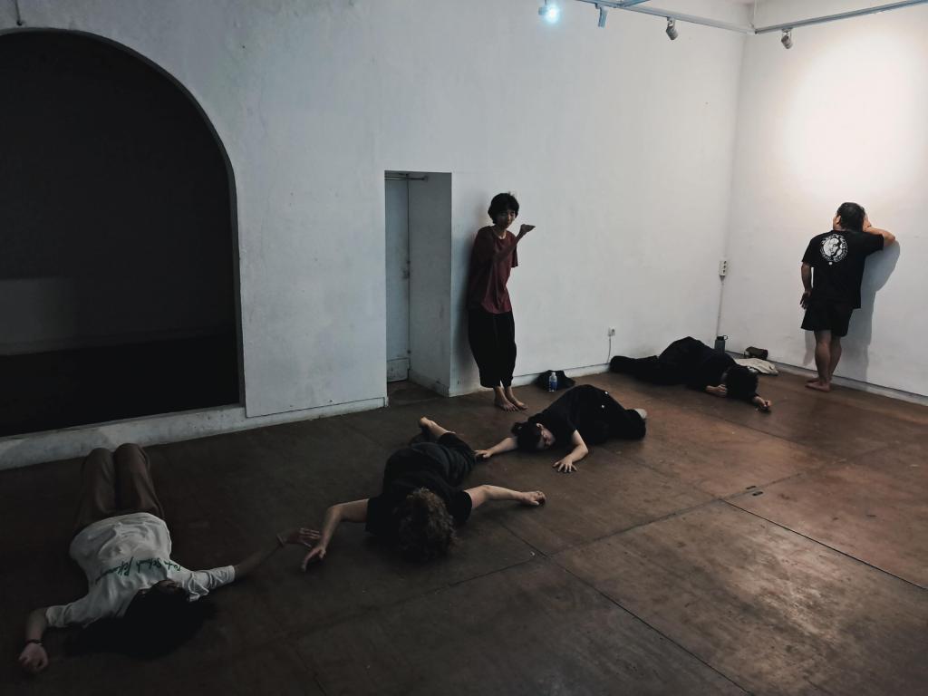 “Fitri divides her method into several parts: (1) The body in space, where the body can be part of the space & the space can be part of the body, until they are connected. (2) The body & space do not become blind texts in a performance, the body reads, feels & expresses. Bringing bodies to find their space, until the body feels comfortable with finding objects that can be made into sounds, such as the friction of hands on the wall, the friction of feet on the floor, the body can feel deeper into a space to explore more. (3) The body & space merge into an expressive text, an examination & extension of the body expressing feelings in the space used. (4.) The body & space become a complete informative text, by using intuition in the space to find objects to use in a performance by observing the body-space-object.”